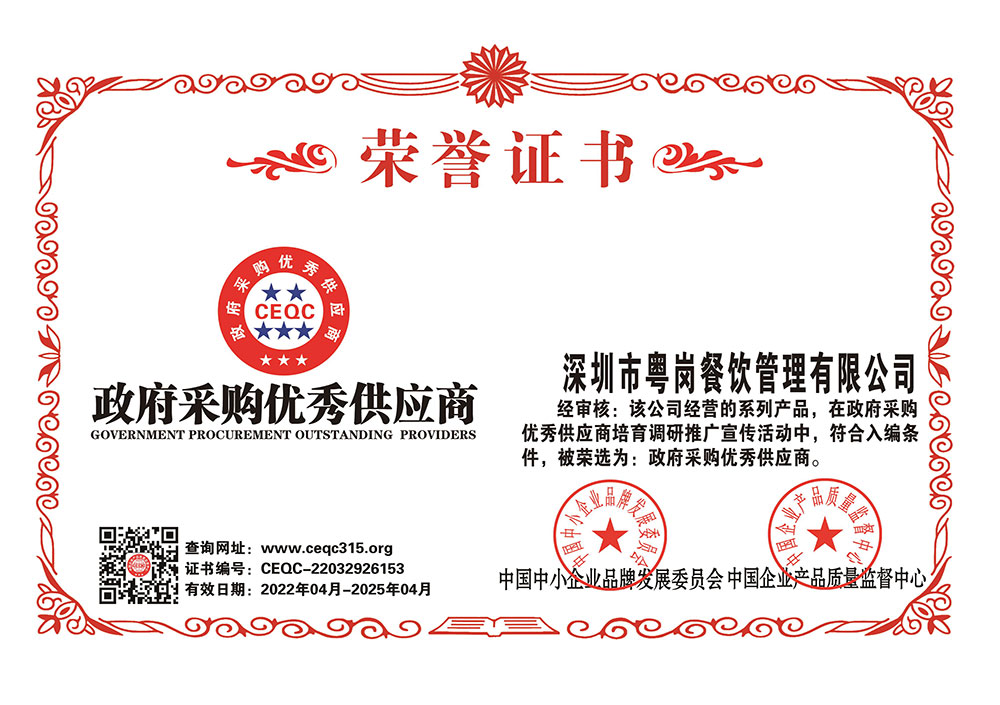 深圳市粵崗餐飲管理有限公司,是一家集蔬菜種植和農副產品配送為一體的專業型餐飲公司,主要為學校、工廠企事業機關單位提供蔬菜和農副產品配送服務。公司自成立以來始終以質優價廉、服務至上為原則,嚴格按照ISO:9001國際標準體系進行管理。同時建立了行業領先的配送中心、大型冷庫和保鮮庫、檢測中心以及專業化的配送團隊,能長期安全、穩定、準時的配送貨物。我們所有蔬菜均經過初步加工、無黃葉,無泥沙等雜質,利用率達97%以上...保障向用戶提供的各類食材的衛生和質量。公司為了適應不同客戶的需求,配有專業人員和配送車輛,實行“一對一”的服務體制,一心一意的為客戶服務,秉承粵崗誠實守信、服務第一、客戶至上的服務標準,真正讓客戶花最少的錢吃最好的菜?;泹彾嗄陙砗我孕佬老驑s,因為我們知道只有勇于擔當責任,才能承擔更大的責任,就是因為 粵崗員工貫徹公司態度決定一切、細節決定成敗的真理,從質量抓起,從服務做起,才創造了如今的規?;⒔y一性配送、專業化服務的粵崗。
